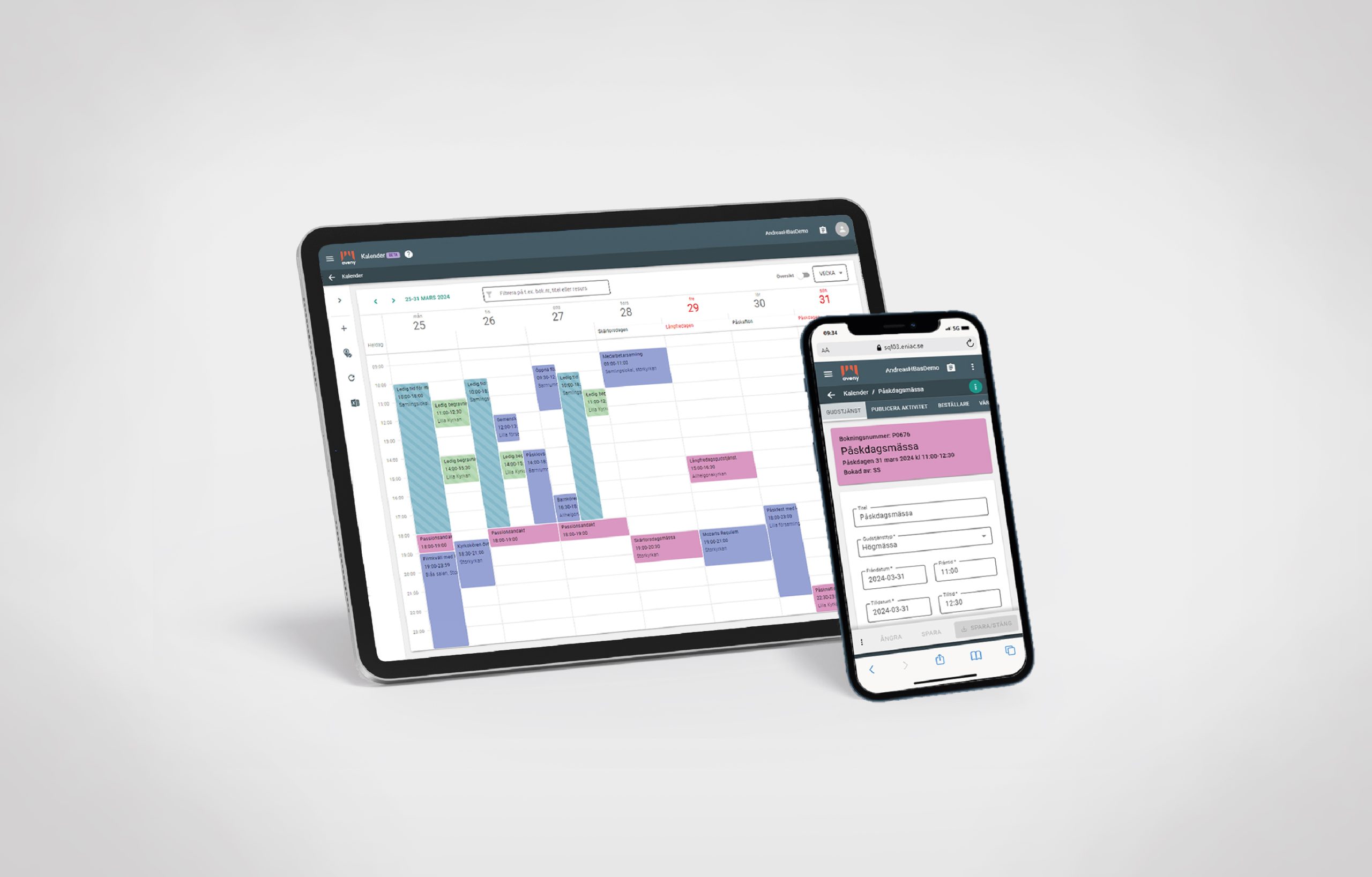 Programmet är anpassat för olika typer av skärmar, och kan med enkelhet användas på dator, padda eller mobil. I Nya Aveny Bokning ingår den funktionalitet som ni är vana vid från WebAveny, d.v.s. bokningskalender med möjlighet att boka och redigera församlingsverksamheter och gudstjänster, statistikrapportering och rapporter – men nu i ett mer användarvänligt gränssnitt!